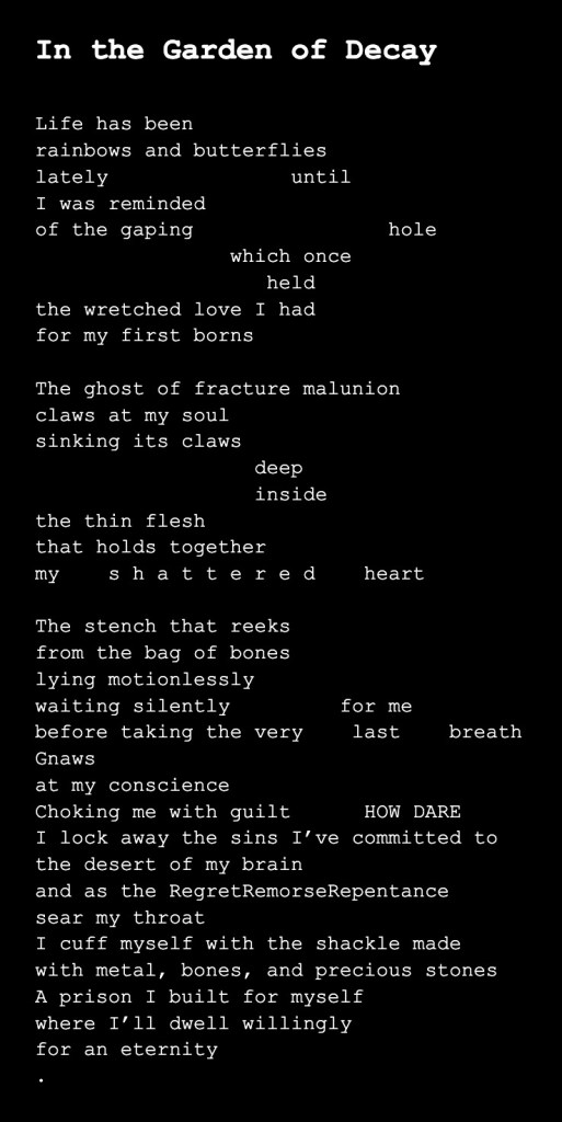 In the Garden of Decay On May 9, 2025May 9, 2025 By bobobel Share this: Share on X (Opens in new window) X Share on Facebook (Opens in new window) Facebook Like Loading... Related